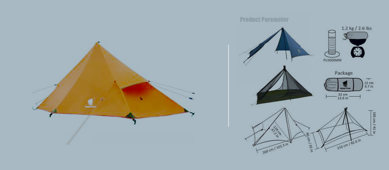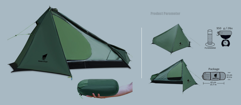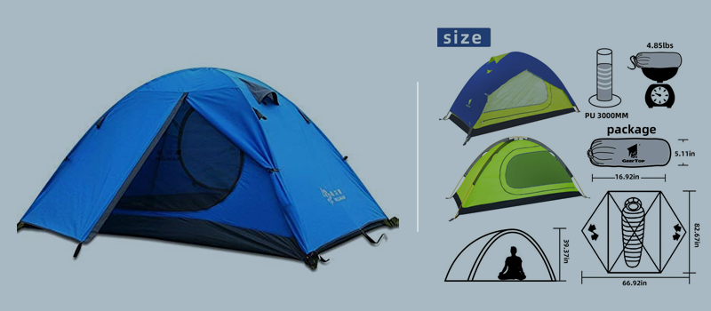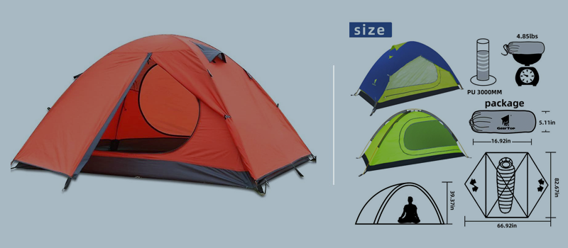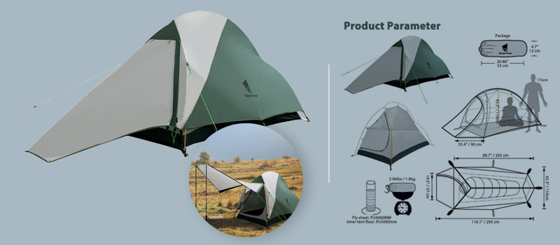 1. Flysheet: 20D 360T PU8000MM nylon plaid fabric (silicon coating), seam taped 2. Inner tent: 20D 360T nylon plaid fabric + B3 high density fine breathable mesh. 3. Floor: 20D 360T PU8000MM nylon plaid fabric, seam taped. 3. Pole material: Aluminum 4. Seasons: 3 to 4 season 5. Number of doors: 1 6. Number of vestibules:1 7. Sleeping capacity: 2 8. Pole diameter: 8.5 millimeters