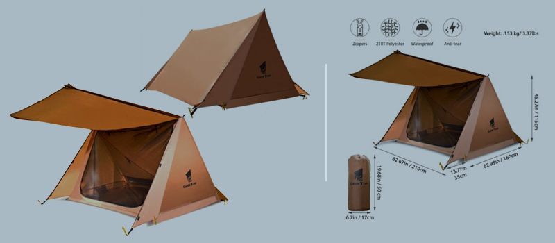 1. Tent: 210T polyester PU3000MM with mesh 2. Tent floor: 210T polyester PU3000MM 3. Size: 82.67 x 47.24 x 45.27 in (L x W x H)/ 210x160x115cm 4. Vestibule size: 82.67 x 13.77 in (L x W)/ 210x160cm 5. Weight: 3.37lbs/1.53kg 6. Package Size: 19.68x6.7x6.7 in/ 50x17x17cm