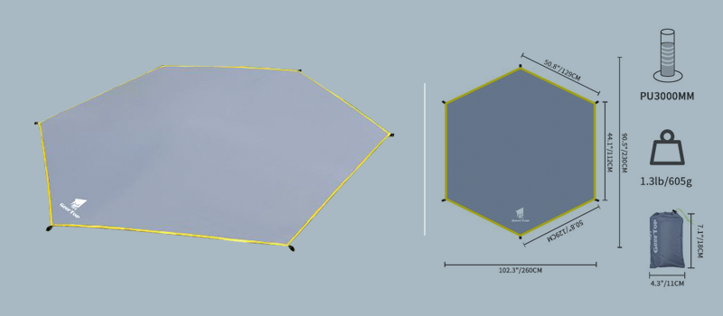 1. Flysheet: 20D PU3000mm waterproof silicon coated nylon, tape sealed and double stitched at the seams 2. Inner tent: 20D 360T nylon woven fabric with B3 high density fine breathable mesh 3. Floor: 40D PU5000MM Silicon Coating Nylon 4. Floor dimension: 210*90cm / 6.88ft *2.95ft (Length * Width) 5. Height of inner tent: 105cm /3.44ft6. Height of Flysheet: 120cm /3.93ft 7. G.W/Piece: 2.65 lbs / 1.20 kg 8. Door quantity: 2 9. Windows of fly: 2 Please Note: This design is