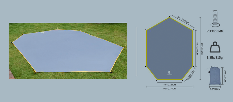 Flysheet: 20D PU 4000mm waterproof silicon coated nylon, tape sealed and double stitched at the seams Inner tent: 210T polyester fabric + grid yarn Floor: 210D PU 5000mm oxford with tape sealed Inner tent height: 110cm Floor size: 95*205cm