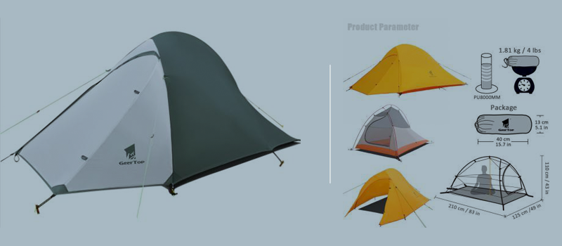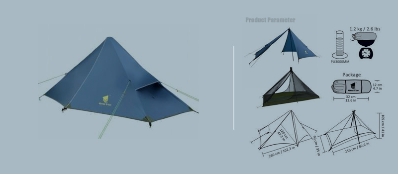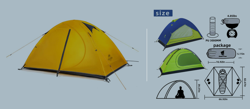1. Flysheet: 20D 360T PU8000MM nylon plaid fabric (silicon coating), seam taped 2. Inner tent: 20D 360T nylon plaid fabric + B3 high density fine breathable mesh. 3. Floor: 20D 360T PU8000MM nylon plaid fabric, seam taped. 3. Pole material: Aluminum 4. Seasons: 3 to 4 season 5. Number of doors: 1 6. Number of vestibules:1 7. Sleeping capacity: 2 8. Pole diameter: 8.5 millimeters