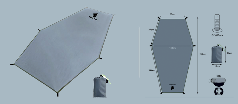 Flysheet: 20D PU 4000mm waterproof silicon coated nylon, tape sealed and double stitched at the seams Inner tent: 210T polyester fabric + grid yarn Floor: 210D PU 5000mm oxford with tape sealed Inner tent height: 110cm Floor size: 95*205cm